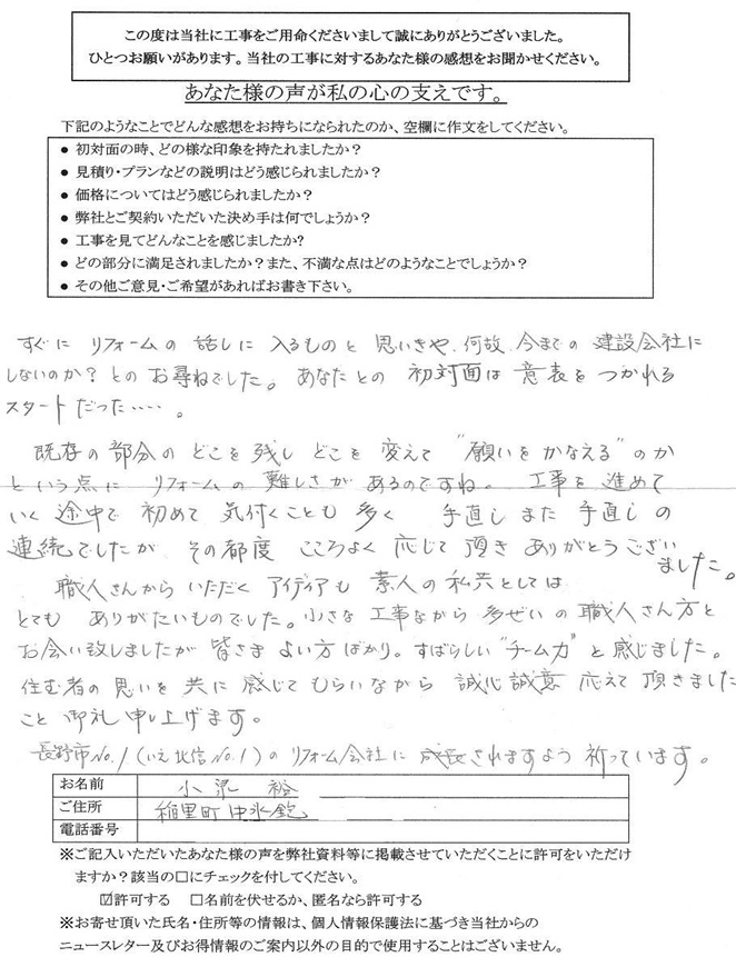 長野市NO.1(いえ、北信NO.1)のリフォーム会社に成長されますよう祈っています。